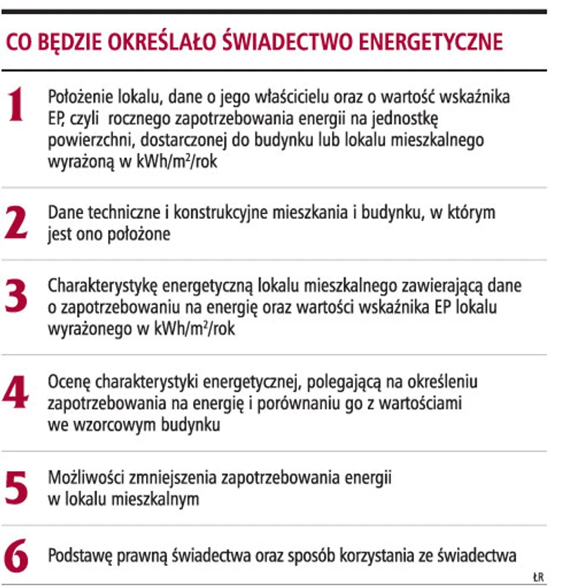 - Świadectwo ma wyrażać ilość energii wyrażoną w kilowatogodzinach przypadających rocznie na jeden metr kwadratowy nieruchomości niezbędną do zaspokojenia różnych potrzeb związanych z jej użytkowaniem. Konia z rzędem temu, kto potrafi przeliczyć to sobie na złotówki. Niewiele osób jest w stanie powiedzieć, ile kilowatogodzin mieści się w jednym metrze sześciennym gazu albo w jednej tonie oleju opałowego - mówi Tomasz Lebiedź, pośrednik nieruchomości z Warszawy.
