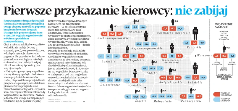 Choć z roku na rok liczba wypadków w skali kraju maleje, to są regiony, w których sytuacja niestety się pogarsza. W ramach akcji Wyższa Kultura Jazdy prezentujemy dane o tym, jak wygląda wypadkowość z podziałem na województwa.