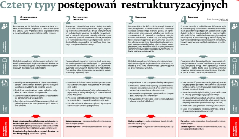 Ustawodawca dał przedsiębiorcy cztery różne warianty postępowania restrukturyzacyjnego. Ich wybór zależy w dużej mierze od sytuacji danej firmy, a także stanu i kondycji zadłużenia.