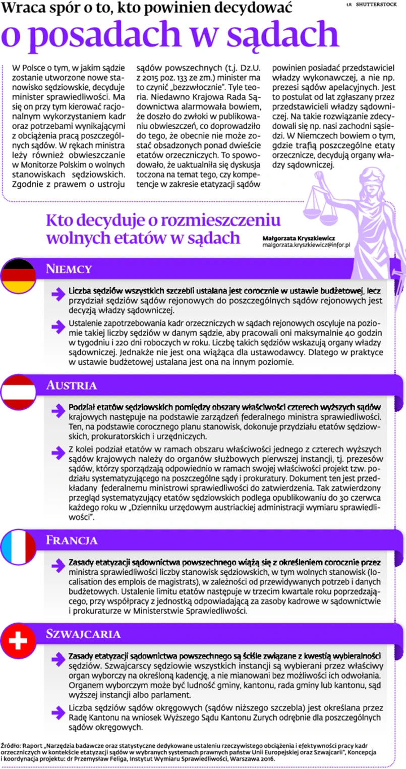 W Polsce o tym, w jakim sądzie zostanie utworzone nowe stanowisko sędziowskie decyduje minister sprawiedliwości.